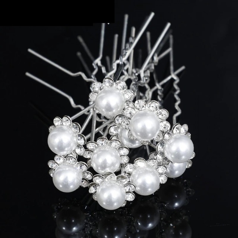 Etichete: Ac metalic pentru par AC004 Argintiu cu perla mare si strasuri, 00000444, Ace de par Moderne