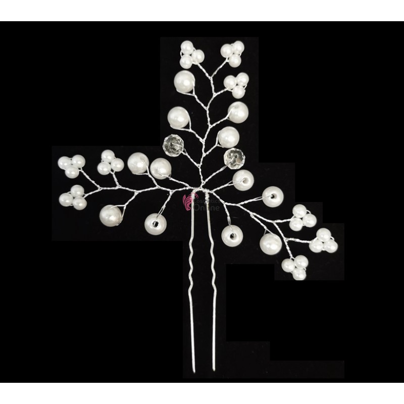 Etichete: Ac metalic pentru par ACM008AA Argintiu cu cristale si perle, 00006411, Ace de par Moderne