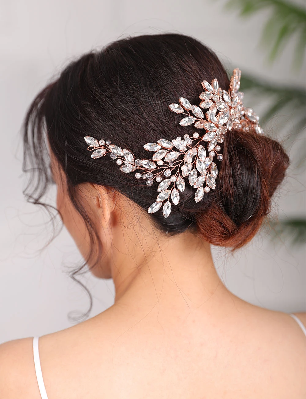 Accesoriu elegant pentru decor par AP028BB Auriu cu perle si cristale