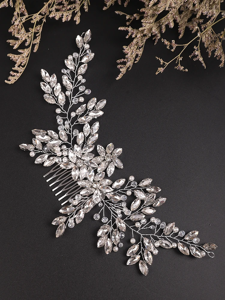 Etichete: Accesoriu elegant pentru decor par AP002EE Argintiu cu cristale Argintii + 4 agrafe, 00001179, Agrafe de par Moderne cu pini