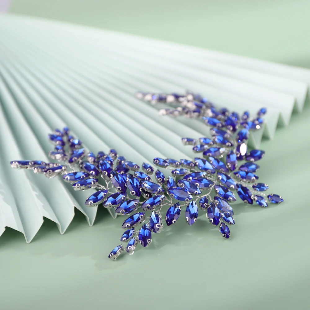 Accesoriu elegant pentru decor par AP002II Argintiu cu cristale Albastre + 2 agrafe