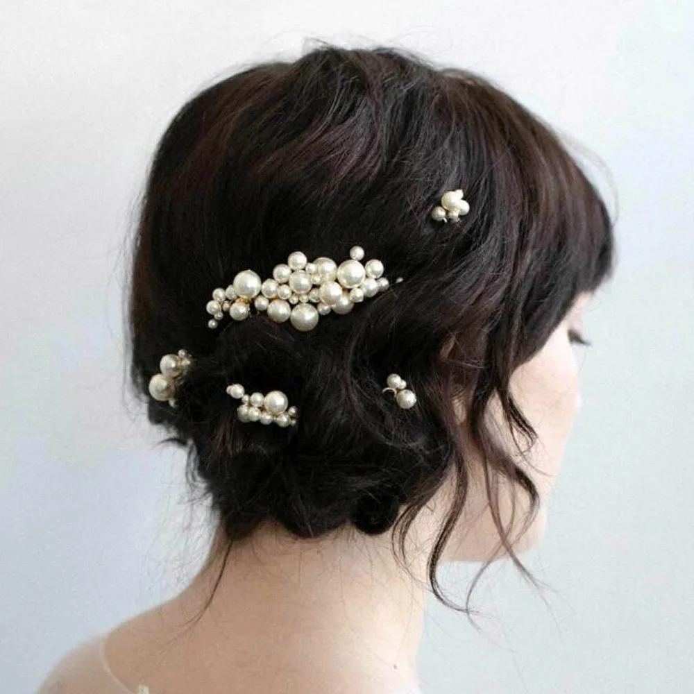 Etichete: Accesoriu elegant pentru decor par AP007 Aurii cu cristale si perle, 00007157, Agrafe de par Moderne cu pini