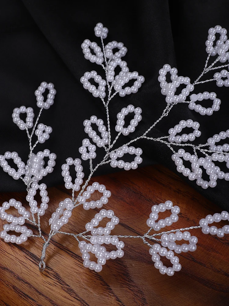 Accesoriu elegant pentru decor par AP010II Argintiu pentru mirese cu perle Albe + 2 Agrafe