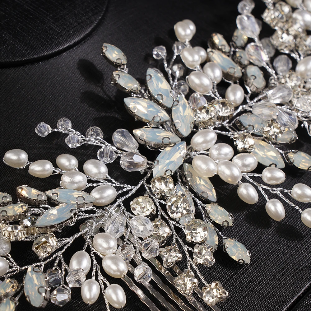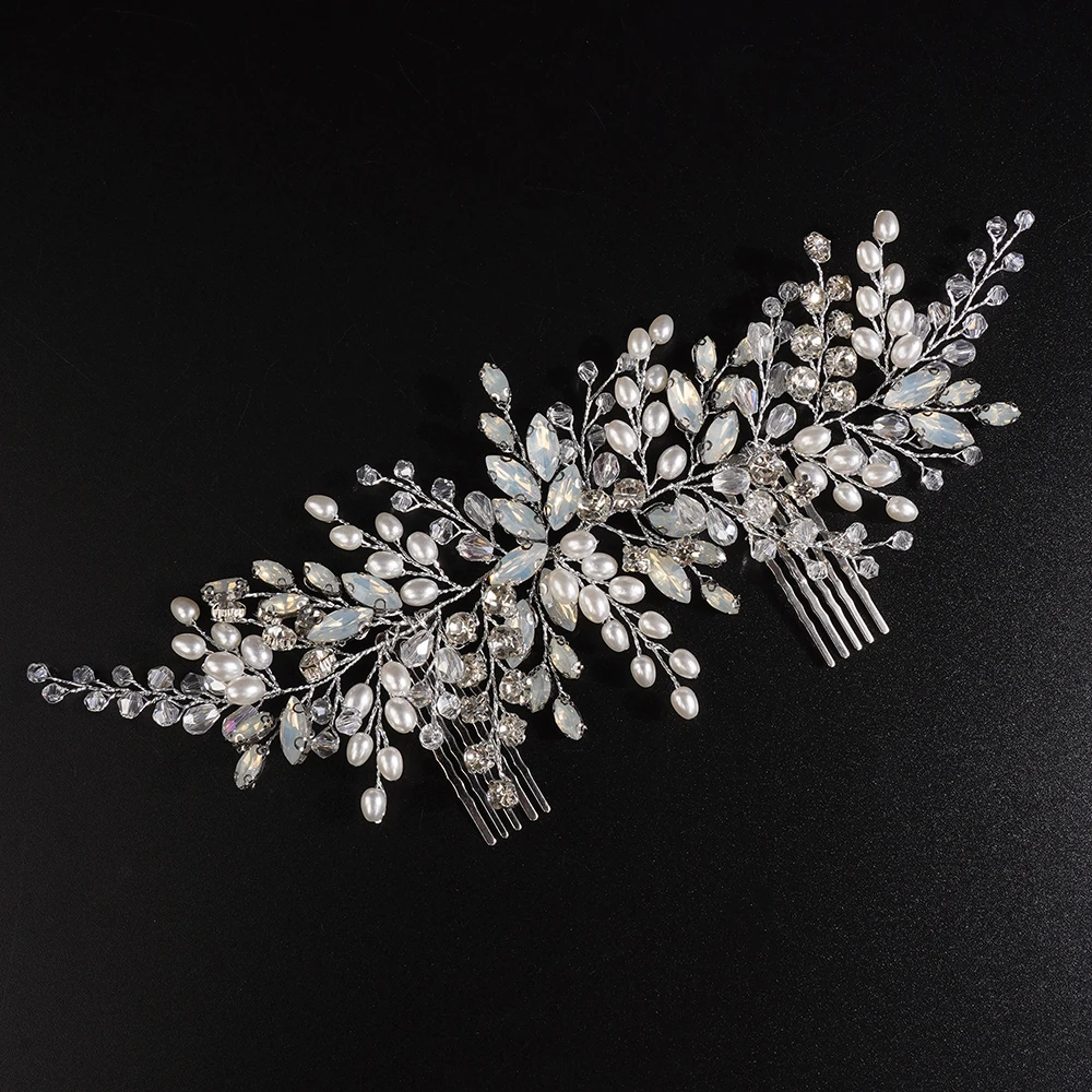 Etichete: Accesoriu elegant pentru decor par AP012LL Argintiu cu cristale si perle + 2 agrafe, 00001179, Agrafe de par Moderne cu pini