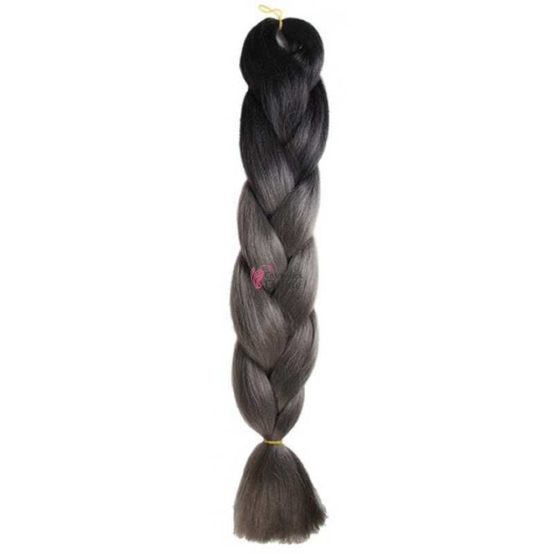 Coada de par afro impletita Premium Ombre 2 de 60 cm Brunet-Silver Dark B29