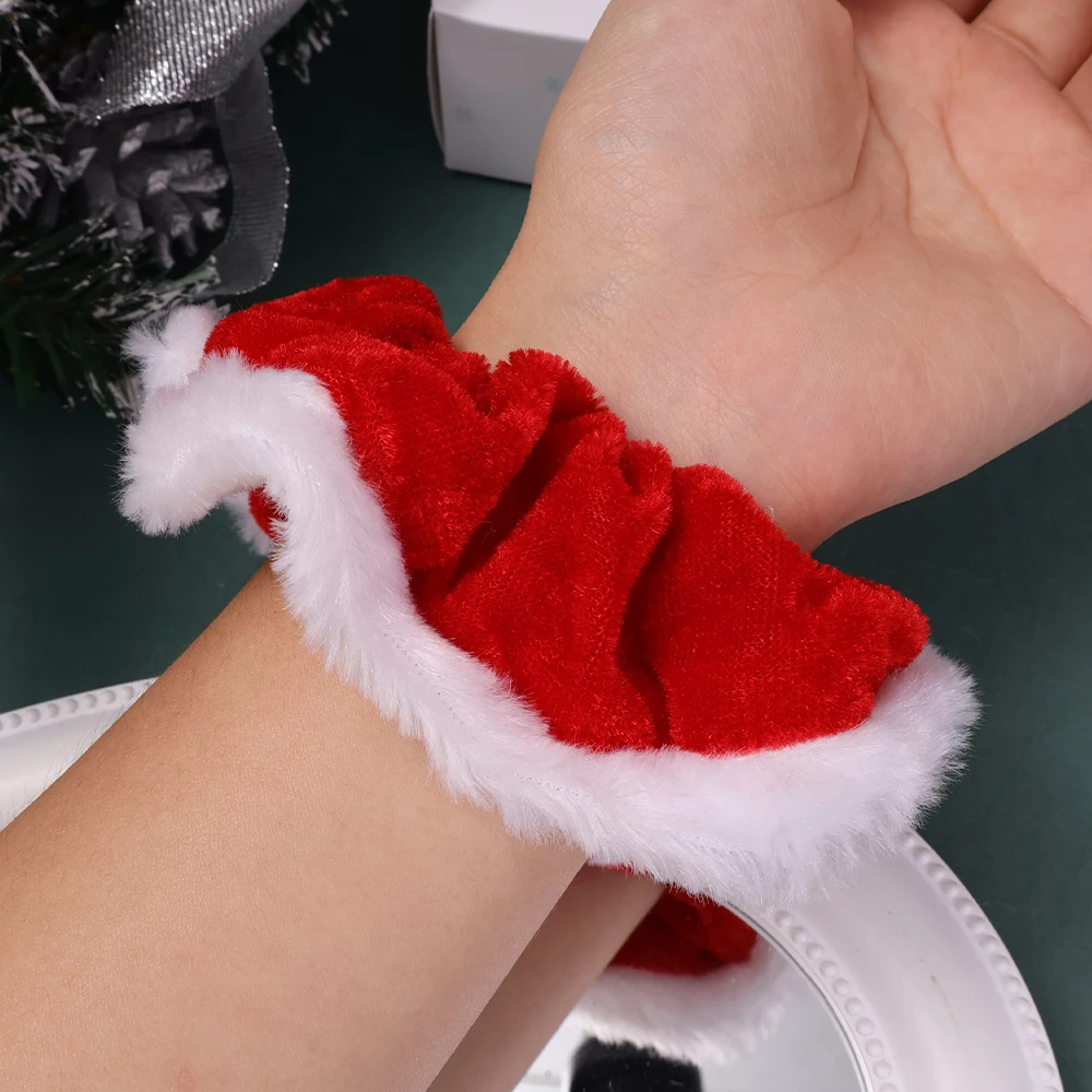 Elastic pentru par Cod ECD004AA din catifea Rosu cu Alb de Craciunite
