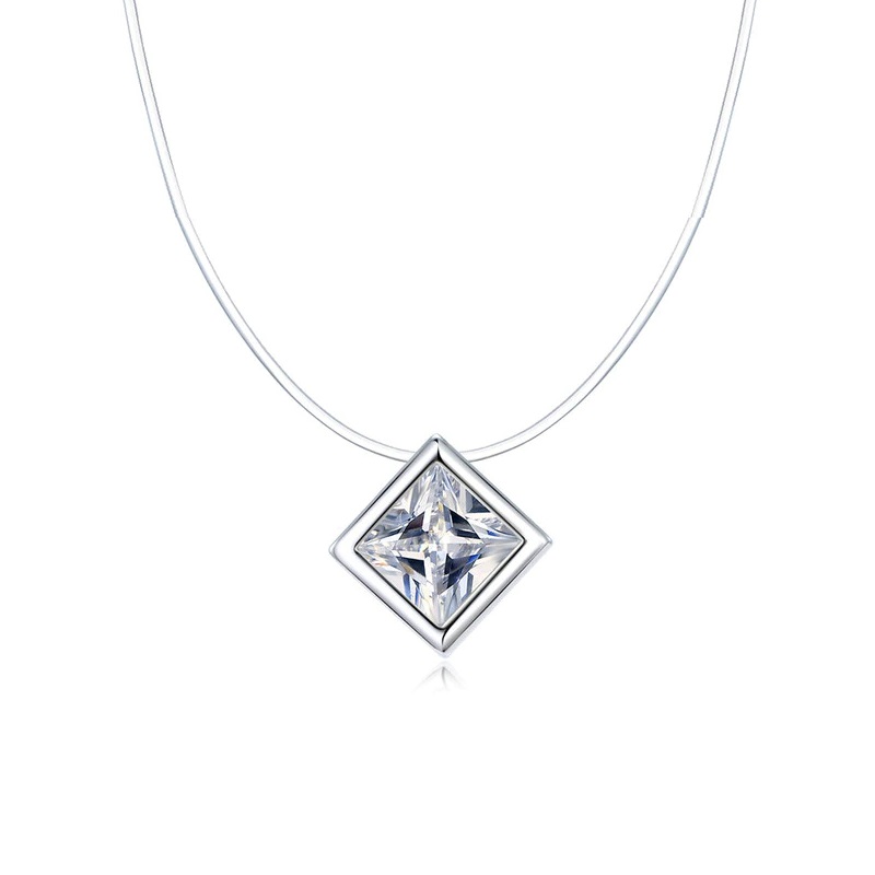 Colier din fir transparent cu pandantiv din zirconiu AS42TT Auriu in forma de romb