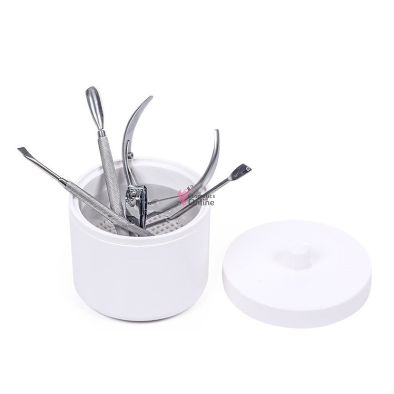 Cutie din plastic pentru sterilizat instrumentarul de manichiura, in special capete de freza si alte instrumente de dimensiuni reduse.