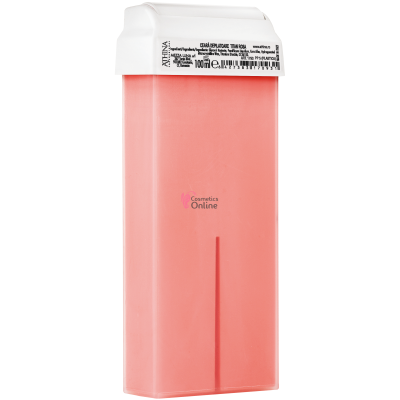 Ceara depilatoare cu TItan Rosa ATHINA are in componența ei ceară naturală, dioxid de titan și miere. Este o ceară liposolubilă de unică folosintă ce se aplică într-un strat subtire. A fost conceputa pentru indepartarea parului subtire, are o aderenta mare pe piele. Aplicata in strat subtire pe piele, indeparteaza eficient toate firele de par.ATENTIE - aceasta ceara se trage cu benzi de hartie (nu se trage cu mana)