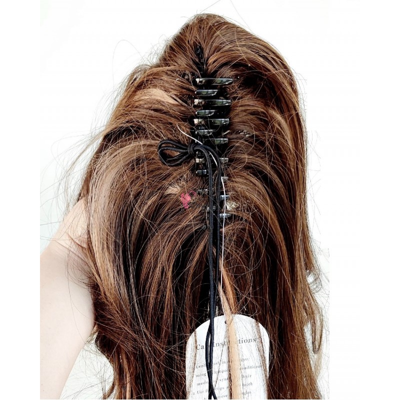 Această extensie tip coadă eleganta este o soluție rapidă pentru a obține instant o coafură lungă, voluminoasă și cu un aspect natural. Cu lungimea generoasă și textura dreaptă cu valuri moi la vârfuri, ea adaugă lungime, densitate și mișcare subtilă, fiind perfectă pentru look-uri de zi cu zi, ieșiri sau evenimente speciale.