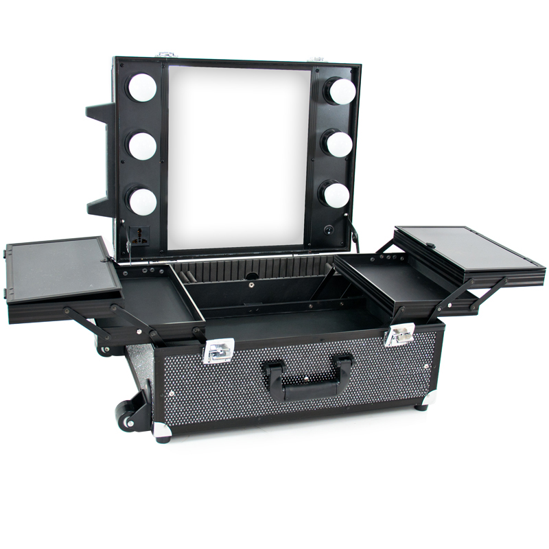 Statia profesionala portabila de make-up este un produs modern, ce se transforma foarte usor dintr-o valiza incapatoare si practica, perfecta pentru depozitarea si transportul produselor si accesoriilor pentru machiaj, intr-o statie de make-up complexa, ideala pentru desfasurarea activitatii in salon sau in deplasare..
