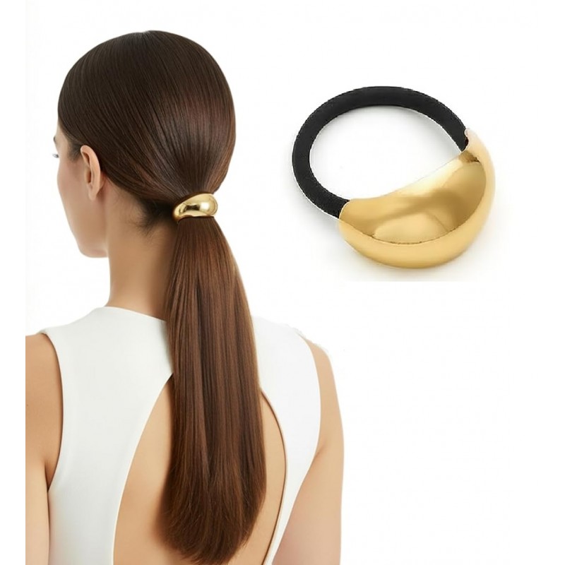 Jumatate de inel metalic cu elastic negru pentru decor par.