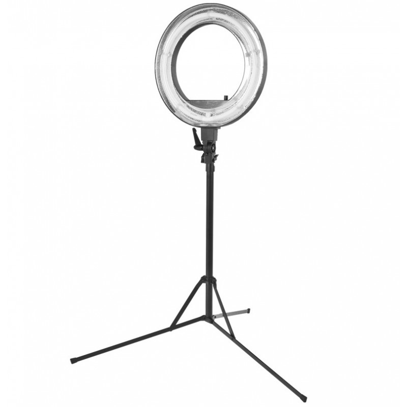 Lampa circulara cu neon de 55W, cu lumina rece si intensitate variabila, cu stativ.