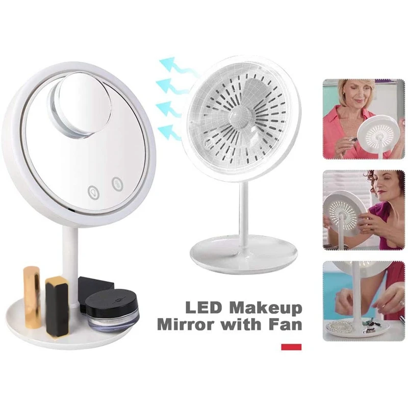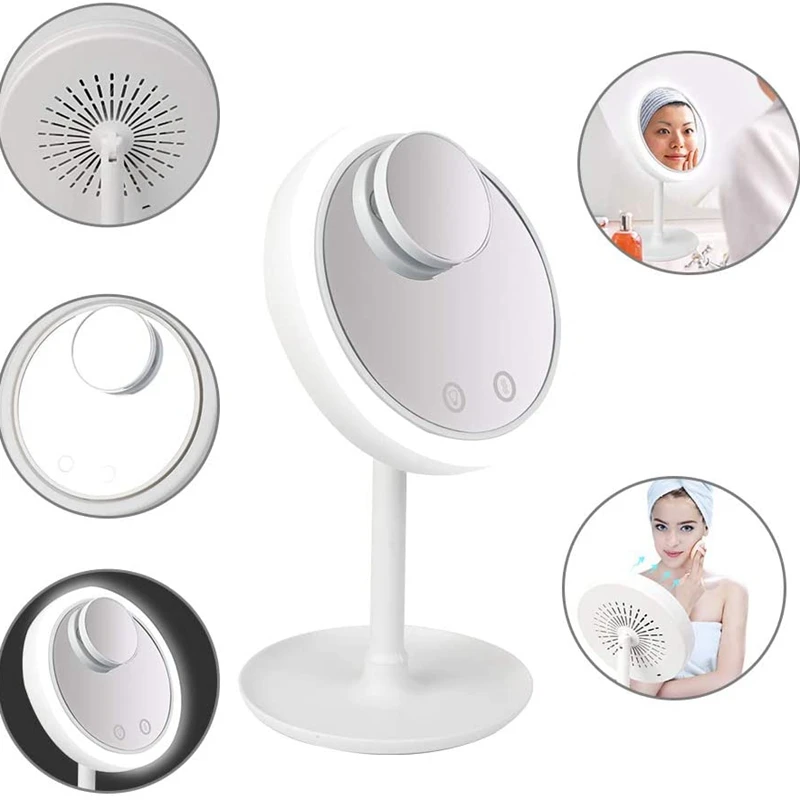 Oglinda cosmetica Breeze Mirror cu 14 led-uri pentru make-up si ventilator + oglinda mica de 5X
