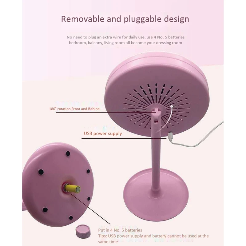 Oglinda cosmetica cu 14 led-uri pentru make-up cu LED cu Ventilator + oglinda mica de 5X
