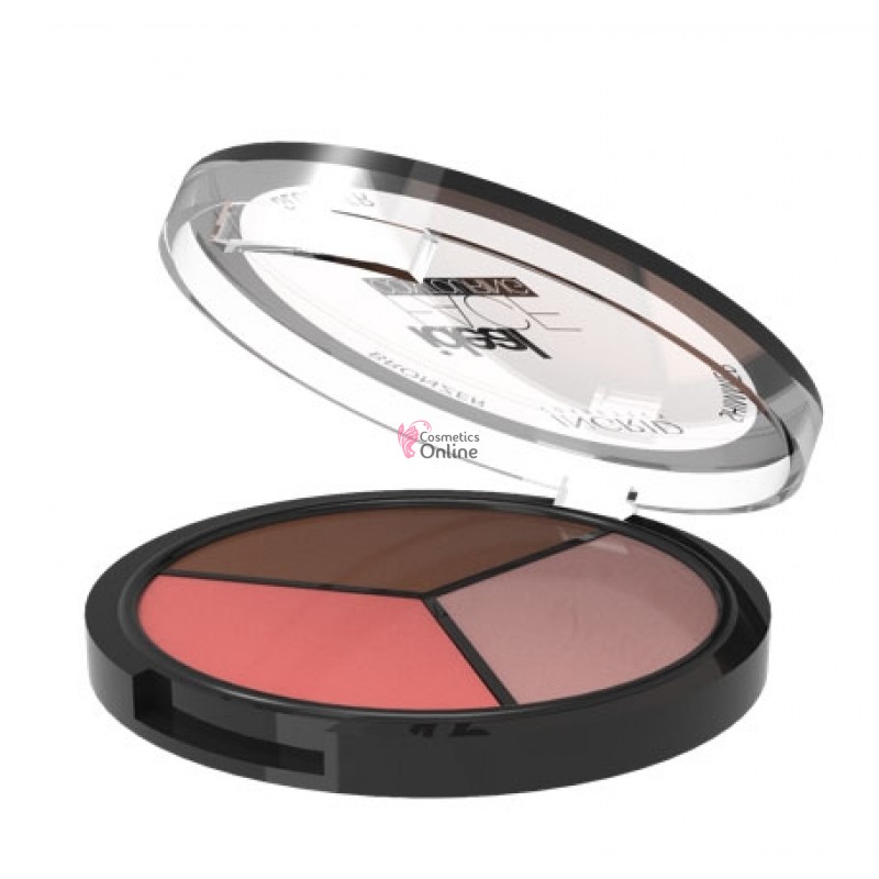 Contine 3 tipuri de pudra, bronzanta, de iluminare si pentru zona obrajilor, astfel incat se poate folosi pentru toate tipurile de ten, culorile fiind cele de baza in make-up.