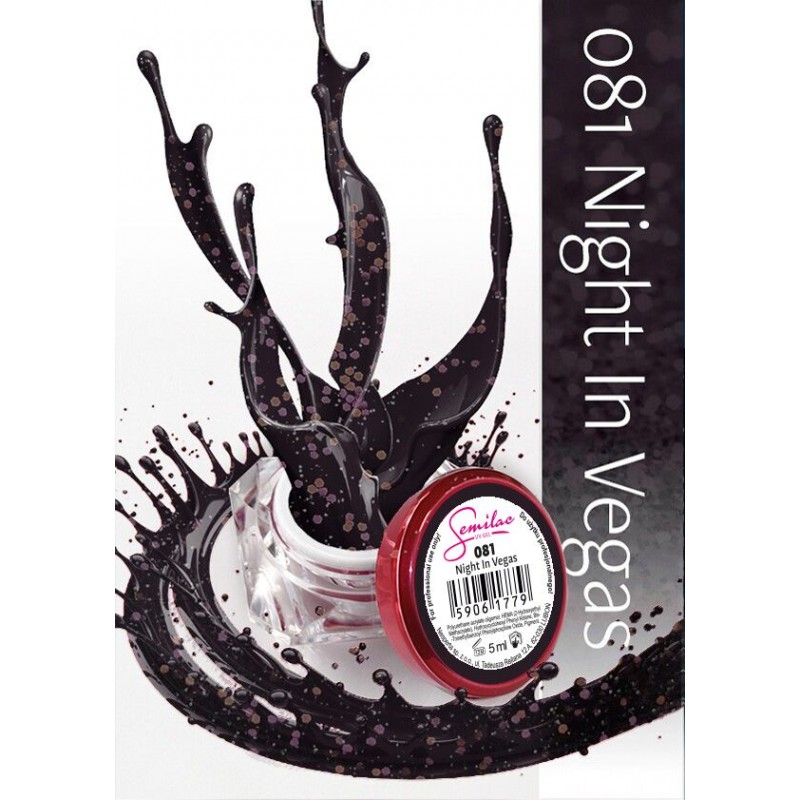 Gel uv Semilac Geltaq color 081 negru cu sclipici Night in Vegas 5 ml + 1 pigment color Neon Cadou