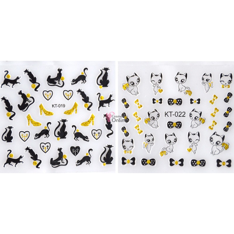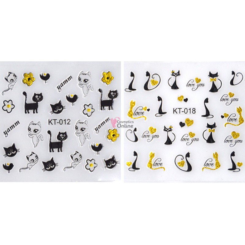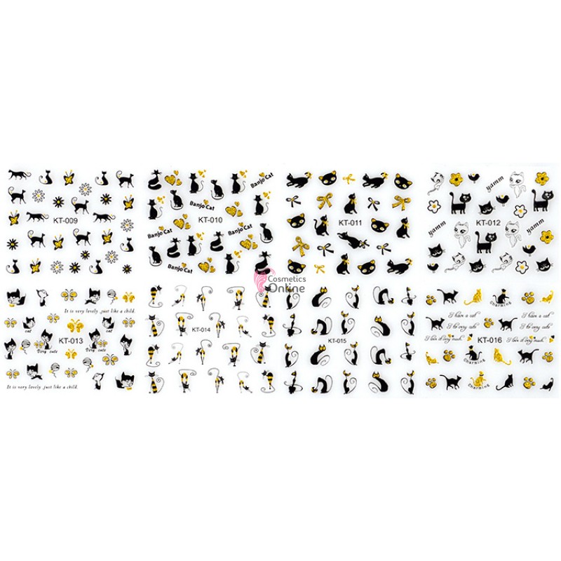 Stickere 3D Combinate 3DA11 Pisici Negre cu Auriu 6 folii